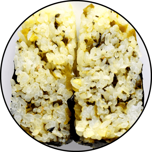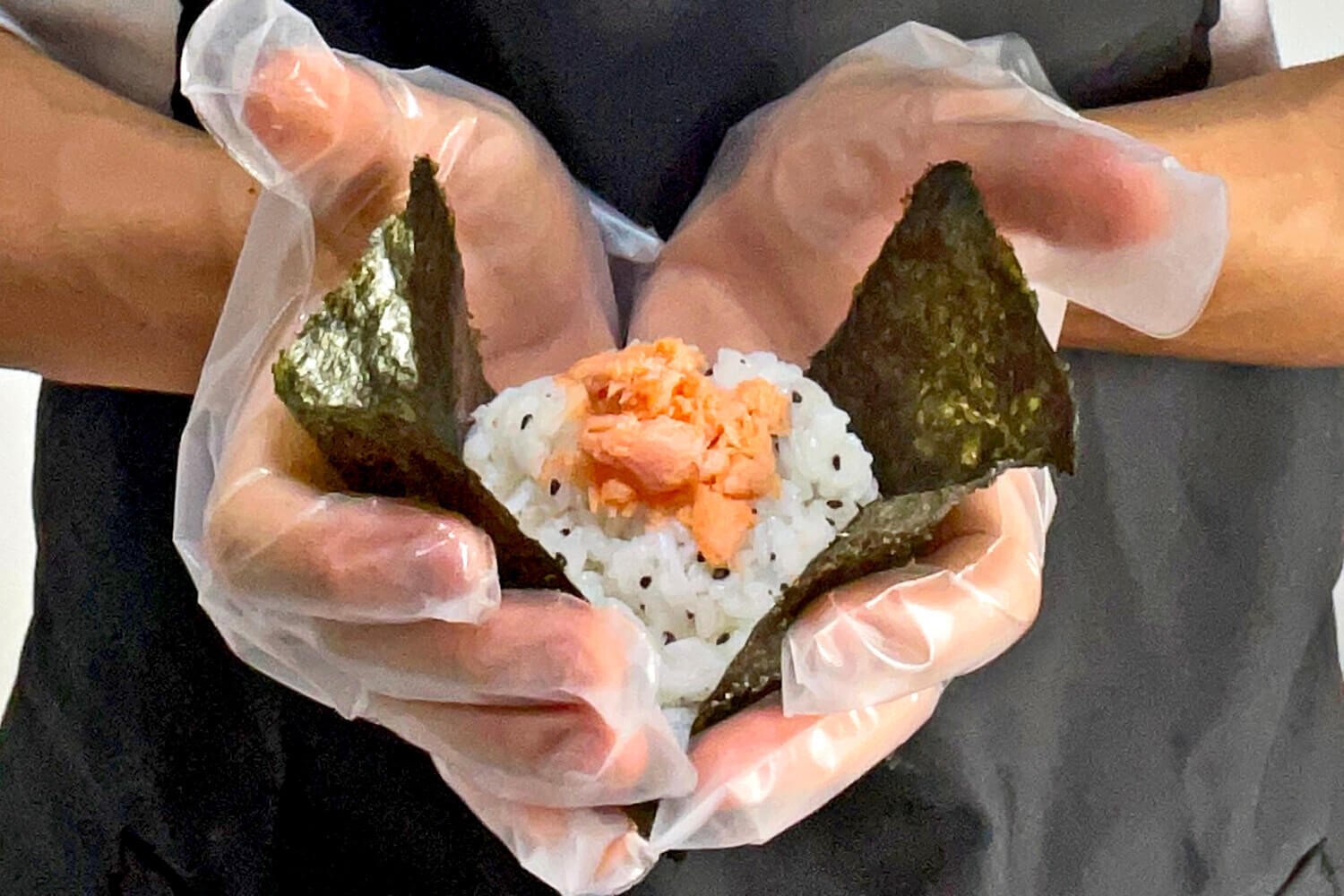 実際は、具材は断面写真のように、おにぎりの中に入っています。